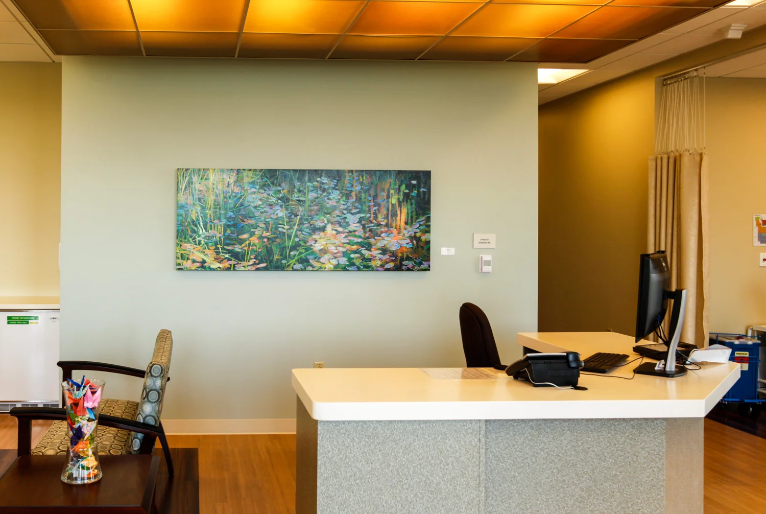 Original and limited edition artwork is featured in reception, waiting areas, corridors, treatment areas, and exam rooms. We worked with the architect, executive director, and a dynamic, donor-driven art committee to put together this hopeful and nature-oriented art program of more than 100 works.